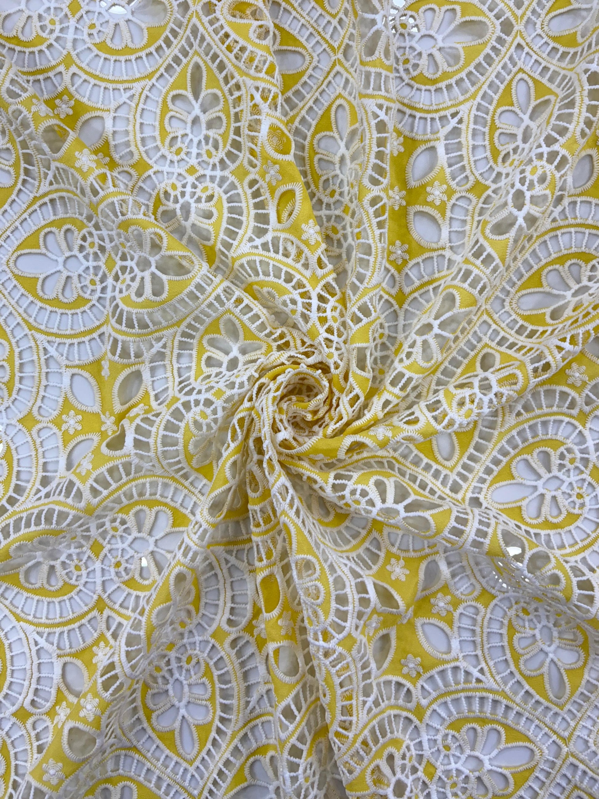 Add a touch of charm and craftsmanship to your wardrobe or collection with this luxurious cutwork fabric.