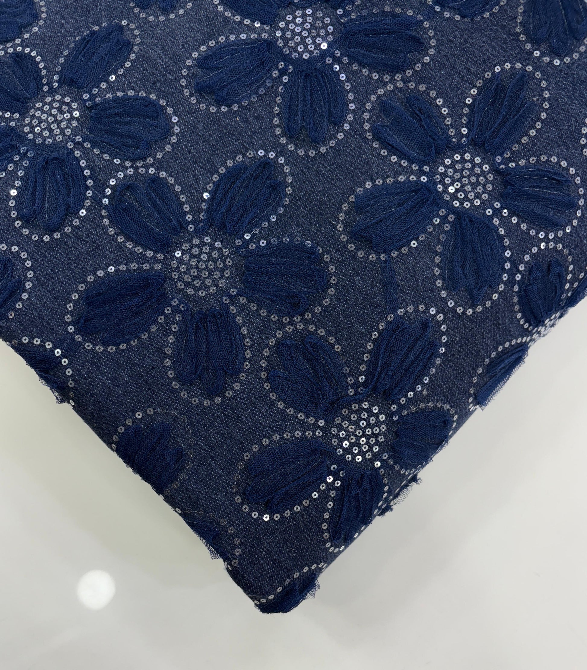 Denim Net Embroidered Fabric with Sequins – Medium Weight