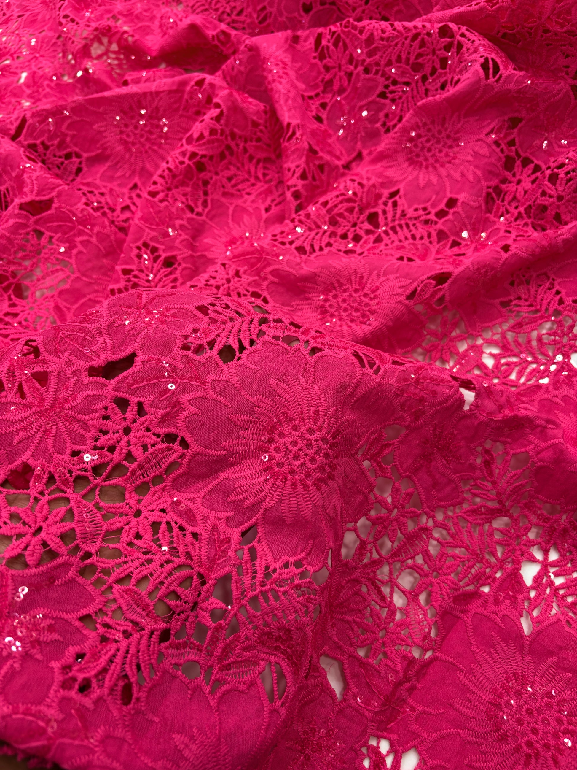 Fabric Type: Crepe with Floral Threadwork & Sequins