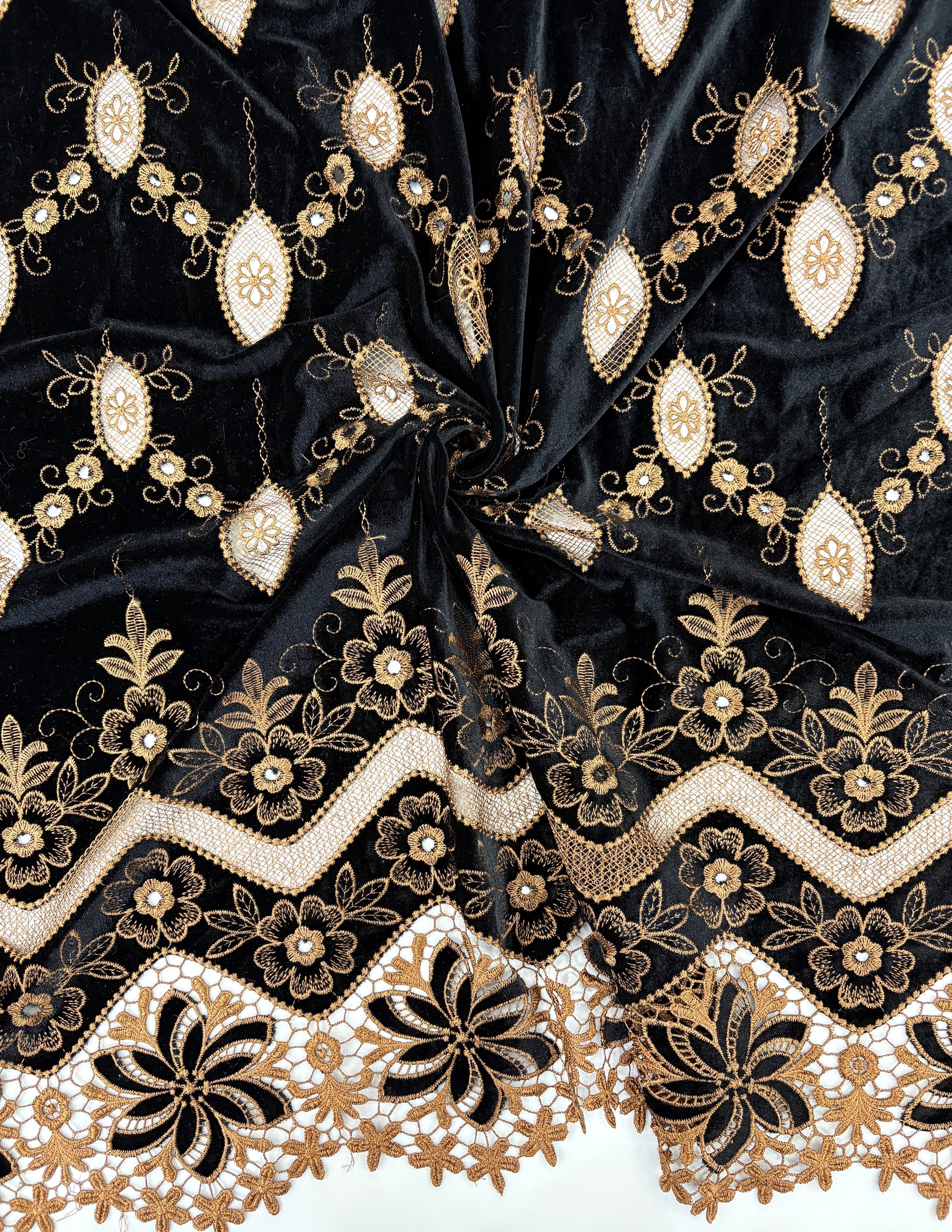 Luxury Velvet Cutwork Fabric with Heavy Embroidered Border – 52” Width